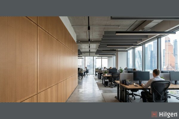 В 2025 году Hilgen выполнял заказ для ресторана итальянской кухни в центре Москвы. Площадь зала — 180 м², высота потолков — 3,2 м. До установки панелей время реверберации составляло 1,9 с, уровень шума в часы пик достигал 72 дБА.